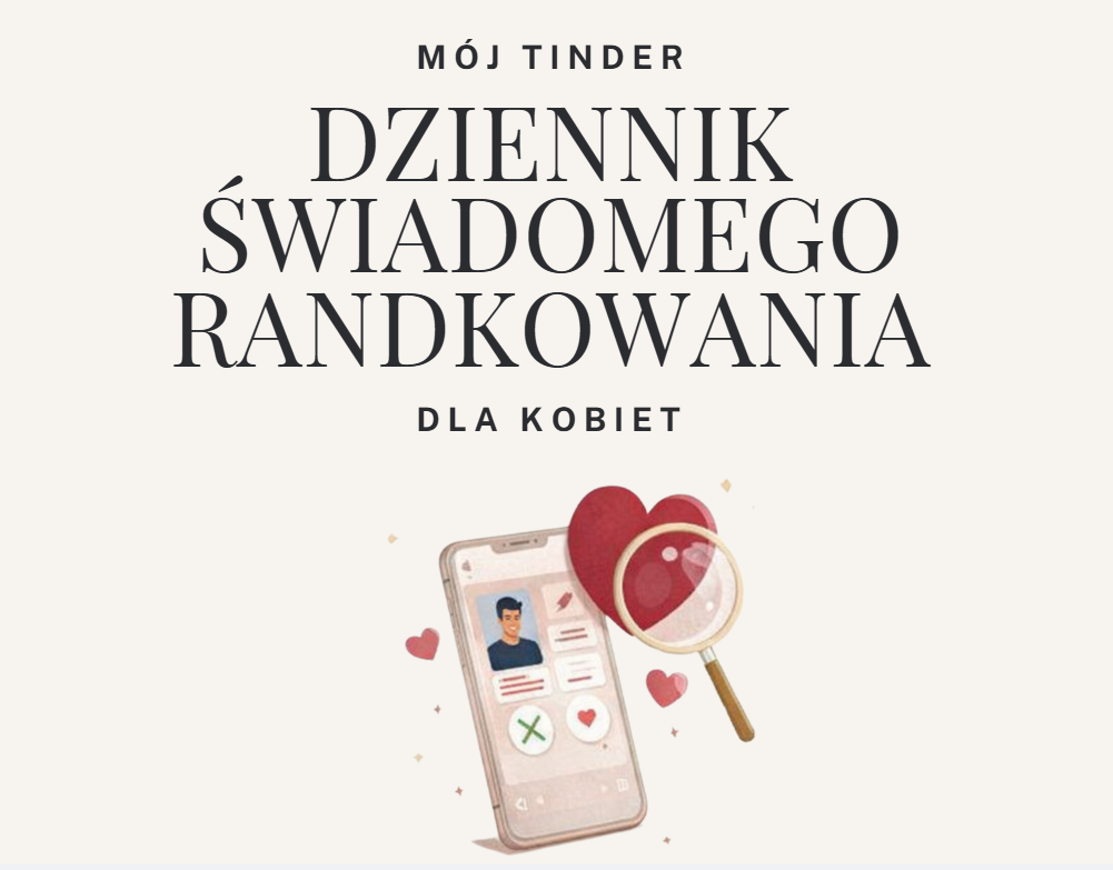 Dziennik świadomego randkowania to autorskie narzędzie dla kobiet, które randkują (lub wracają do randkowania) w świecie aplikacji i chcą odzyskać klarowność, spokój i poczucie wyboru.